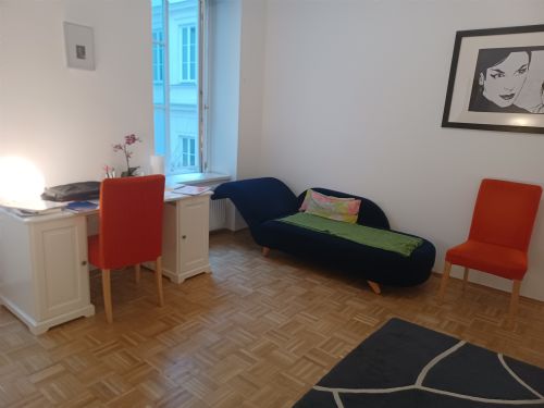 Mitten im 7. Bezirk in einem verkehrsfreien Durchgang gelegen, bietet die Praxis ausreichend Raum und Ruhe für therapeutisches Arbeiten. Die Räumlichkeiten wären ab November 2025 jeweils Montag ganztags und Dienstag, Donnerstag Nachmittag zur Nutzung verfügbar.